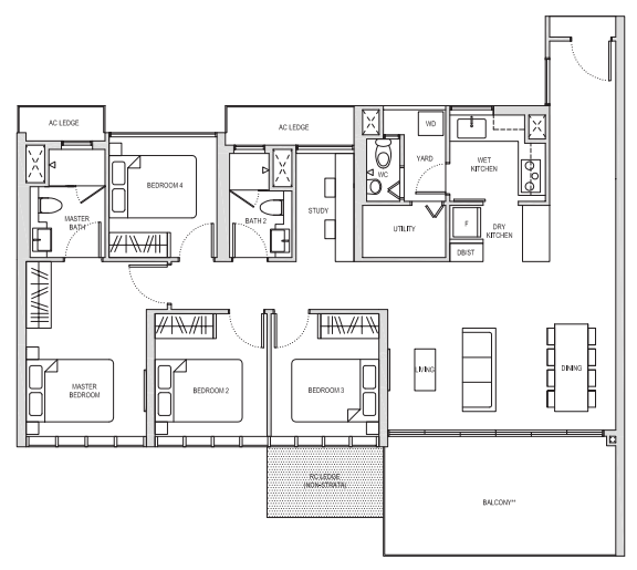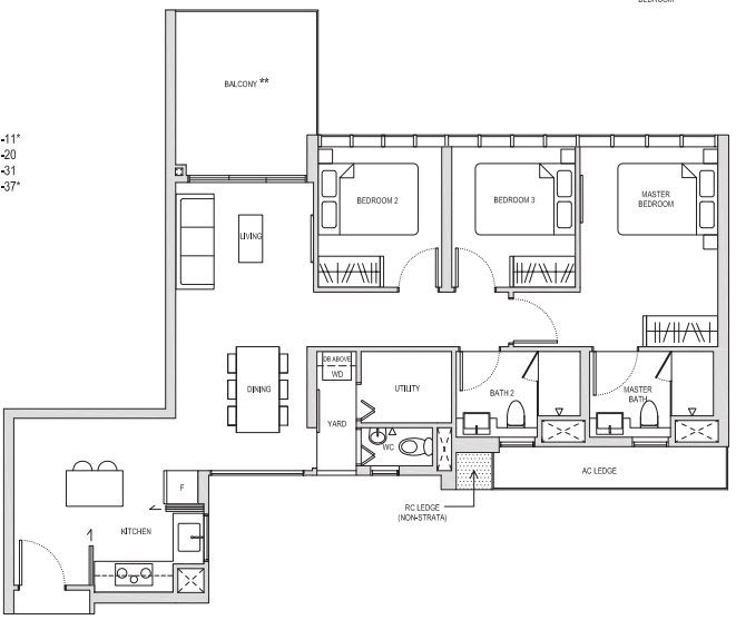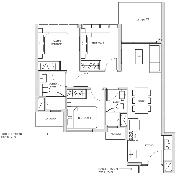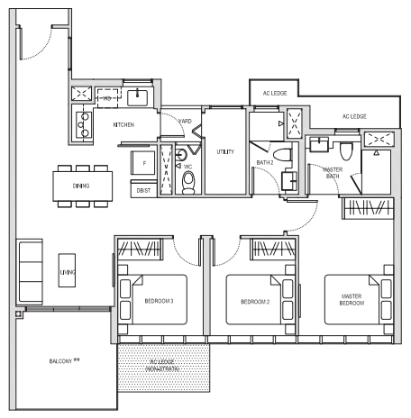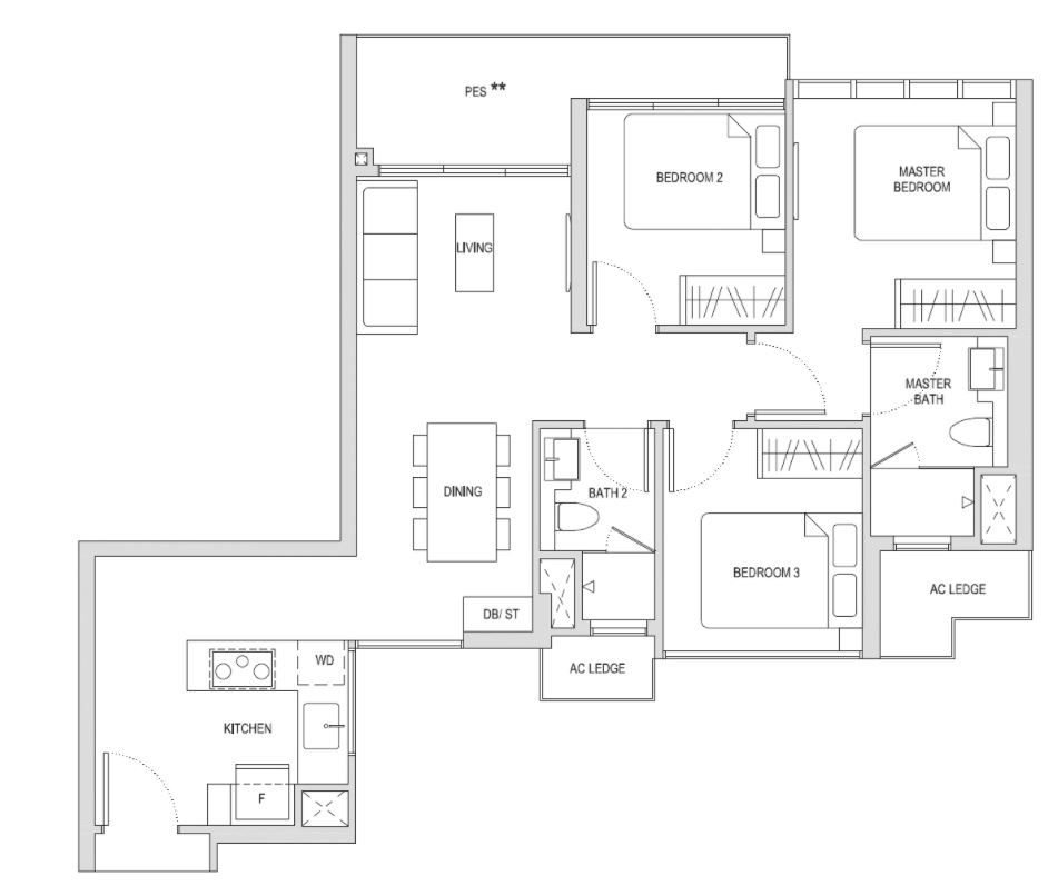 | 3 Bedroom (D) | 1076 - 1249 | 110 |