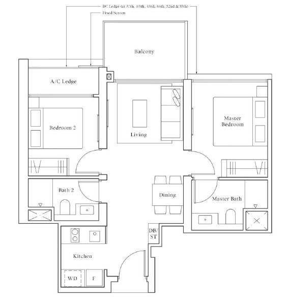 99 Years Leasehold 1074 Units TOP Q2 2023 Height 56 Storey 1 Bed 2 Bed 2 Bed Premium 3 Bed 3 Bed Premium 4 Bed Premium
