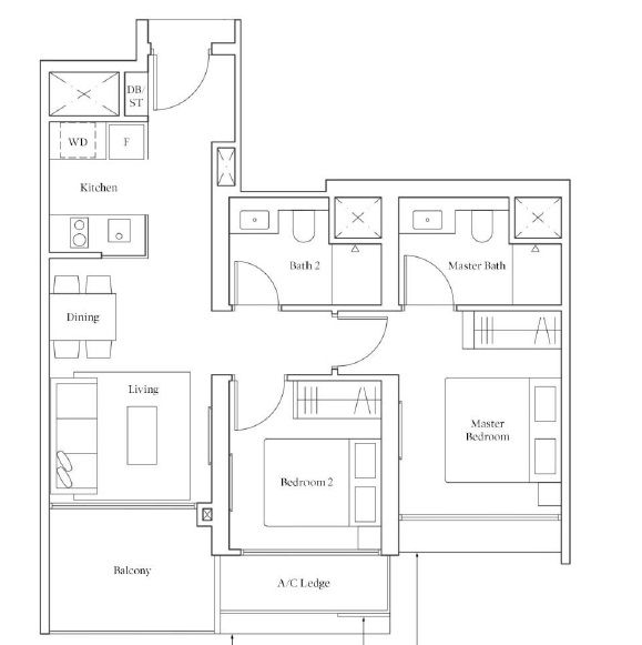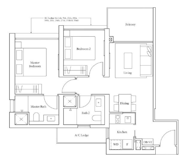 | 2 Bedroom (P) | 689 - 883 | 88 |