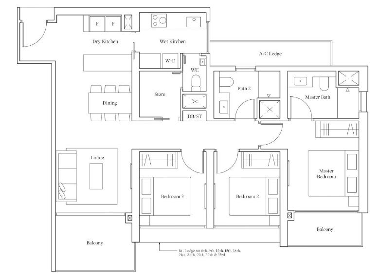 | 3 Bedroom | 947 - 1120 | 70 |