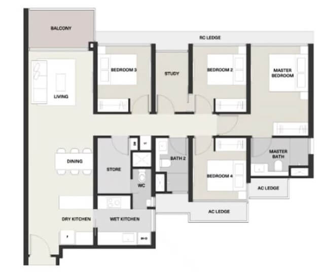 99 Yrs Leasehold 658 Units TOP Aug 2024 Height 37 Storey 1 + Study 2 Bed 3 Bed 4 Bed 4 Bed + Study5 Bed