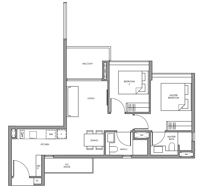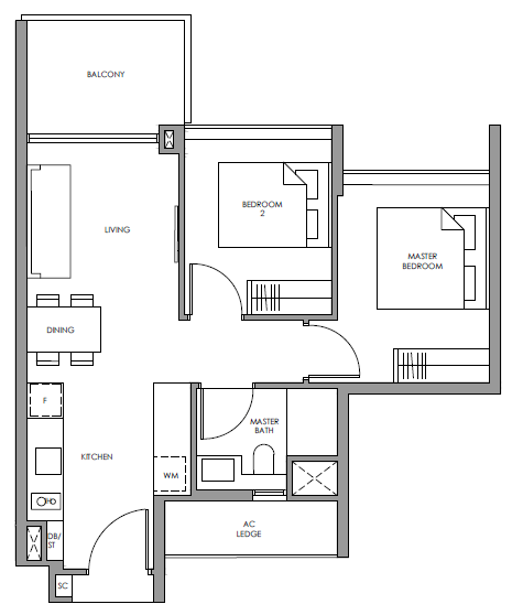 | 2 Bedroom (P) | 689 - 721 | 118 |