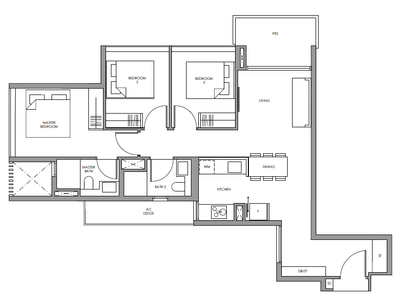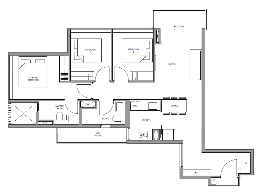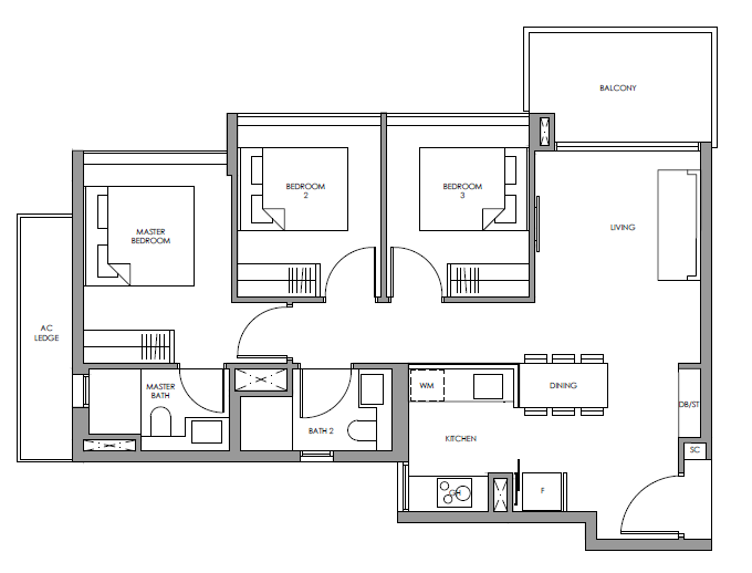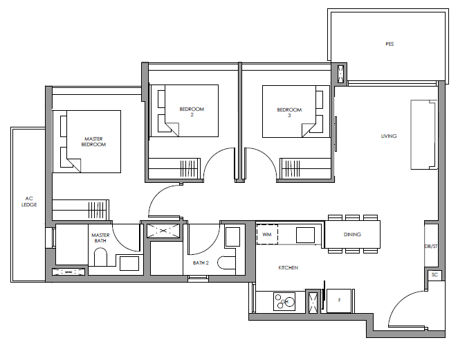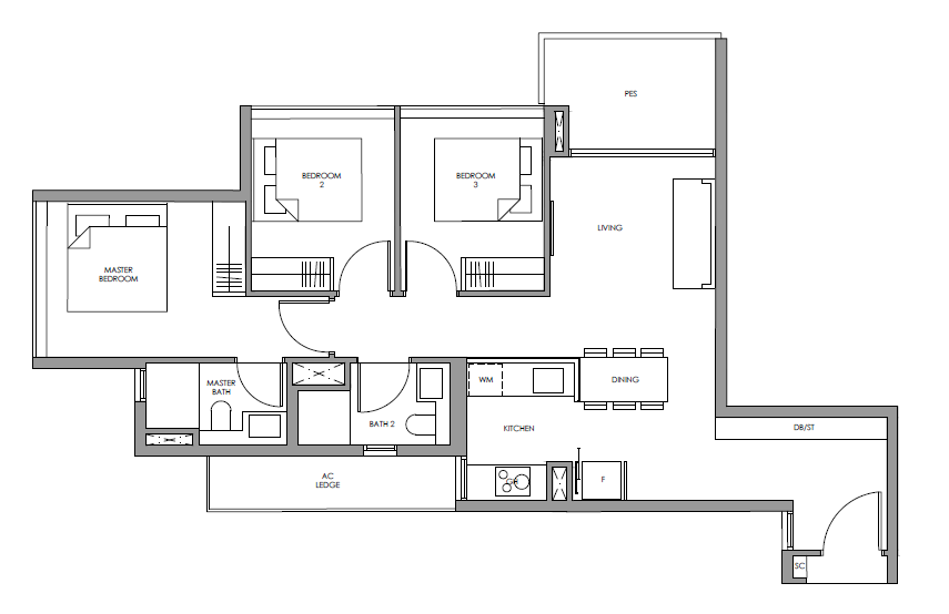 | 3 Bedroom | 915 - 969 | 64 |