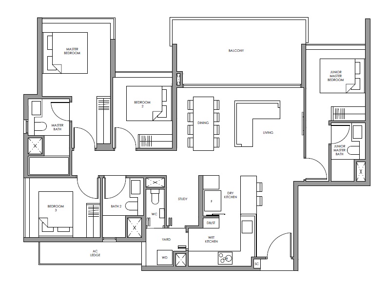 99 Yrs Leasehold 309 Units TOP Dec 2021 Height 40 Storey 1 Bed 1 Bedroom + Study 2 Bed 2 Bed + Study 3 Bed 4 Bed + Utility