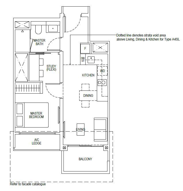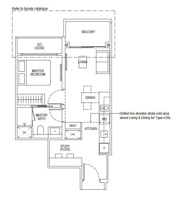 | 1 Bedroom + Study | 495 - 667 | 102 |
