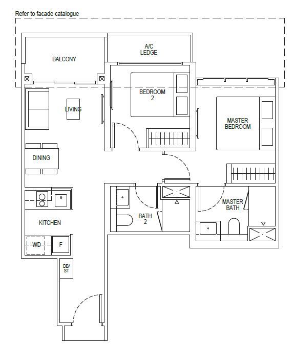 | 2 Bedroom (C) | 603 - 764 | 135 |