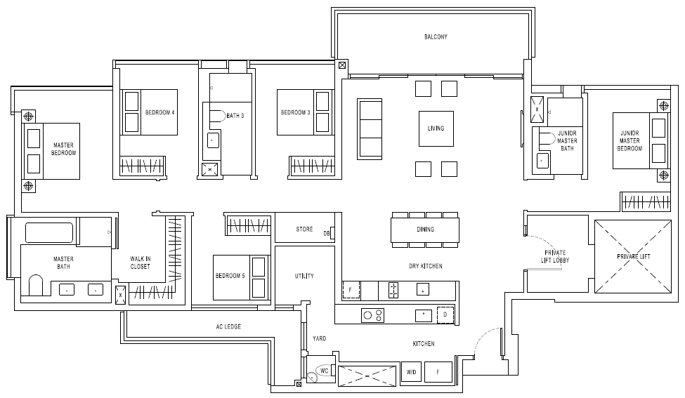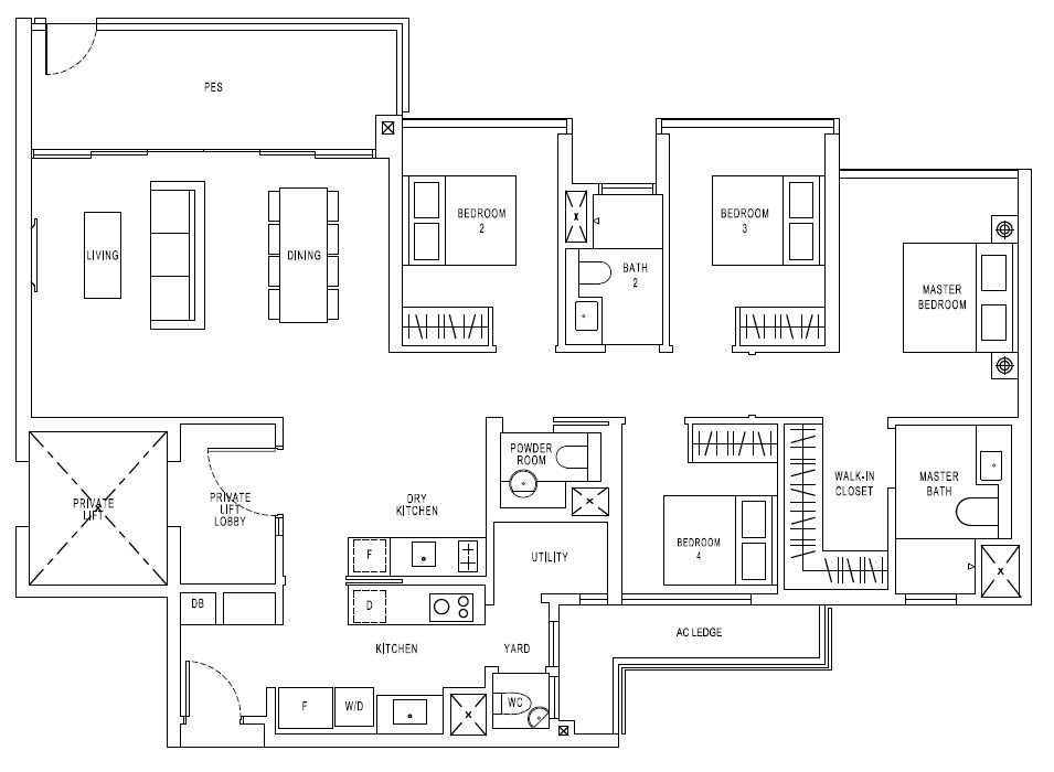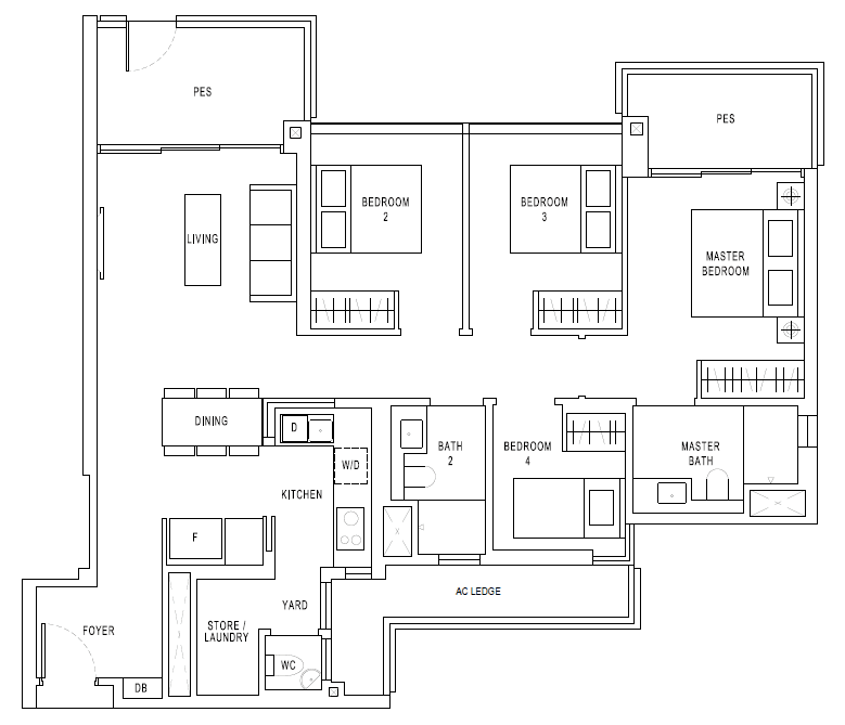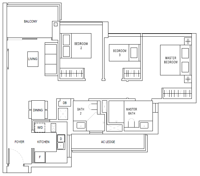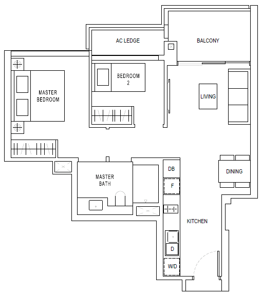 | 2 Bedroom (D) | 958 - 1163 | 94 |