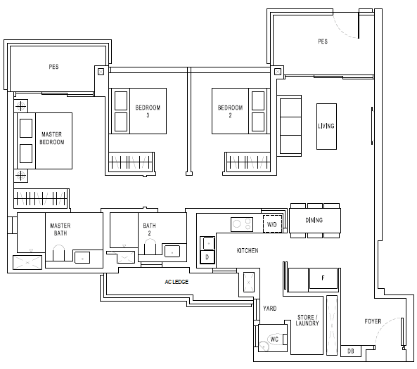 | 3 Bedroom (P) | 1141 - 1152 | 42 |