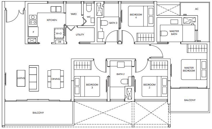 | 4 Bedroom | 1227 - 1270 | 24 |
