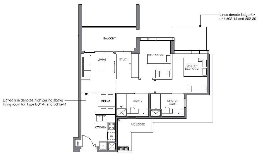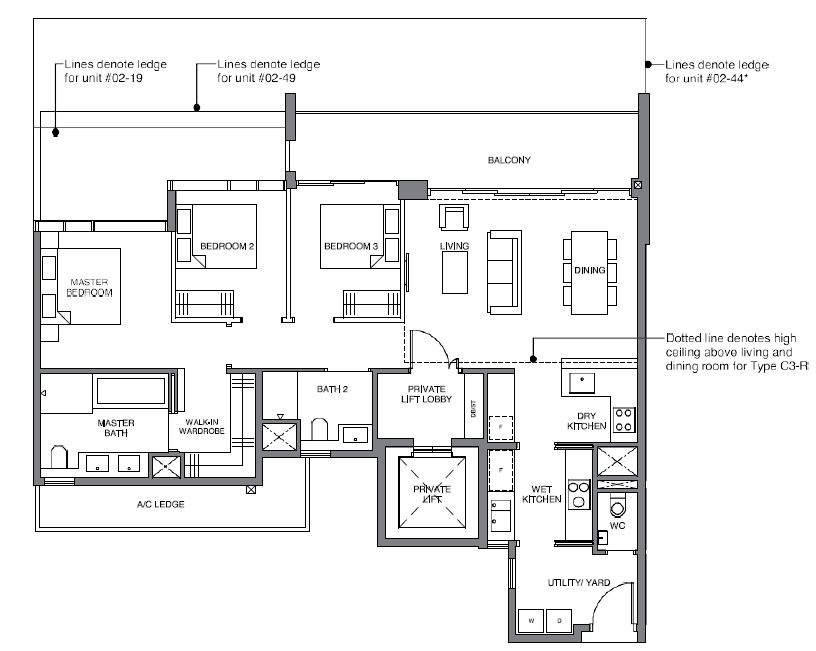 | 3 Bedroom (E) | 1044 - 1163 | 45 |