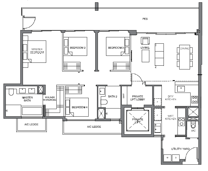 Freehold 638 Units TOP 31 Mar 2024 Height 12 Storey 1 Bed 1 Bedroom + Study 2 Bed 2 Bed + Study 3 Bed 3 Bed + Utility 3 Bed + Utility + Lift 4 Bed + Utility + Lift 4 Bed Garden Villa