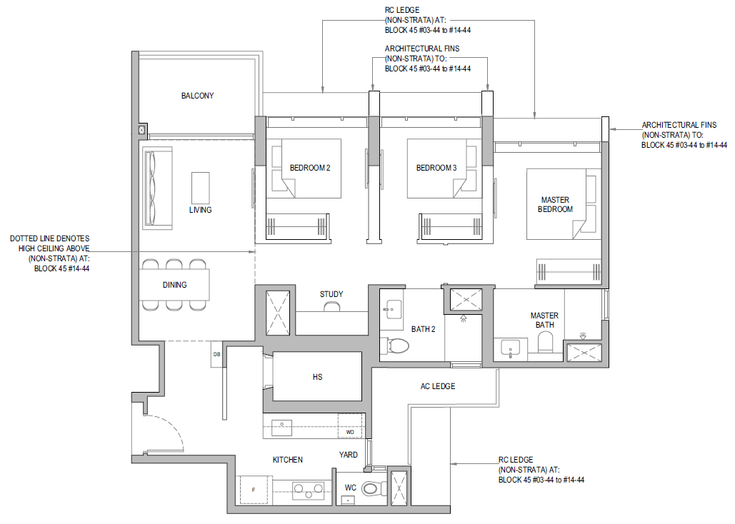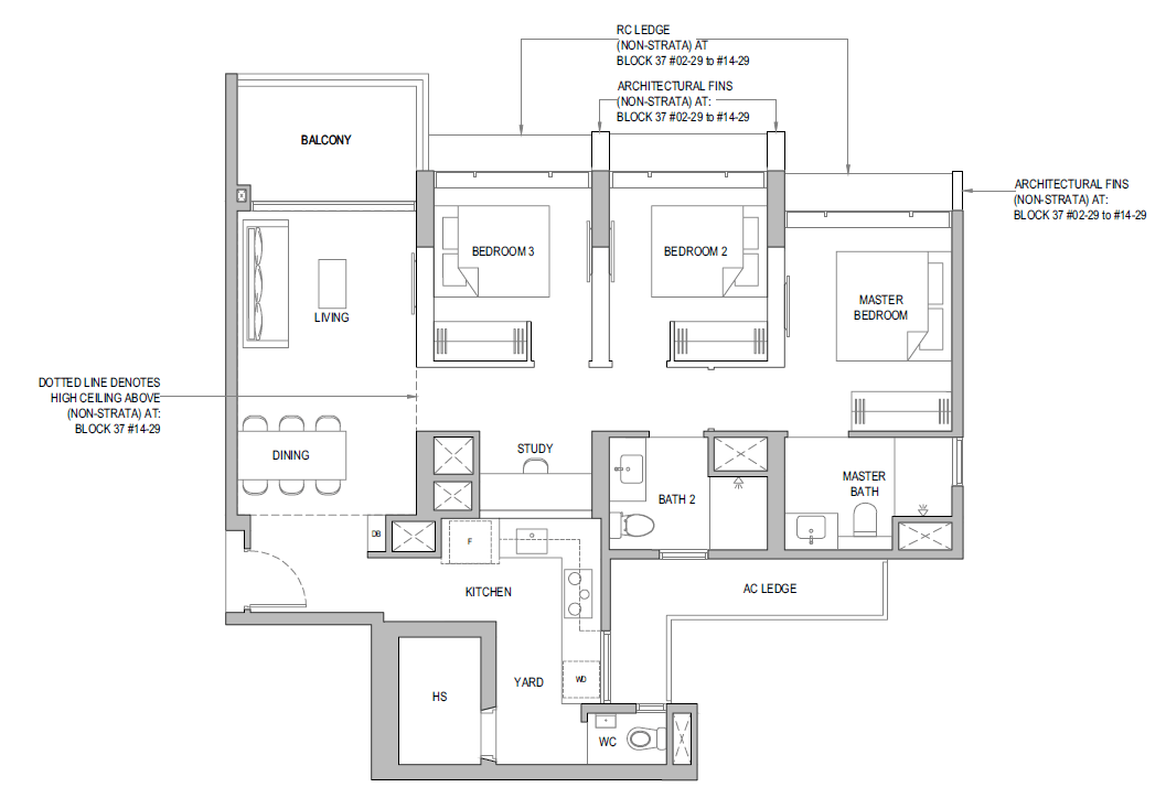 | 3 Bedroom + Yard + Study | 797 | 20 |