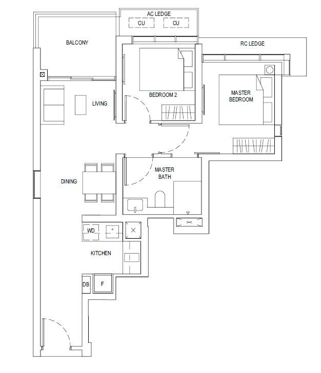 | 2 Bedroom | 700 - 732 | 116 |