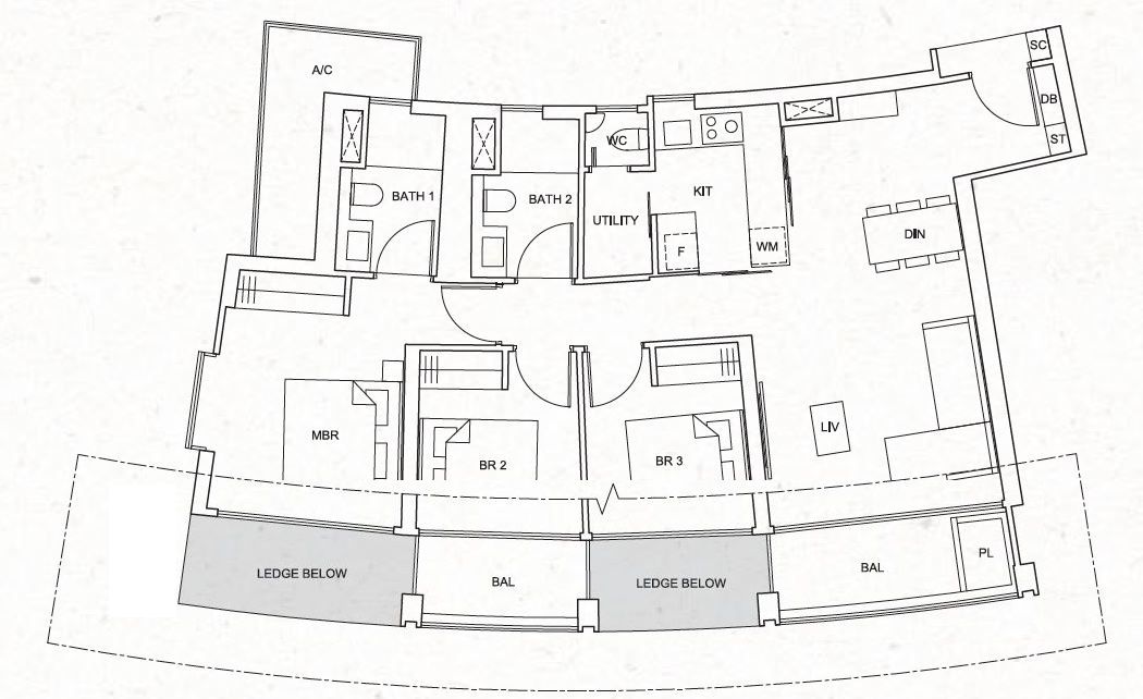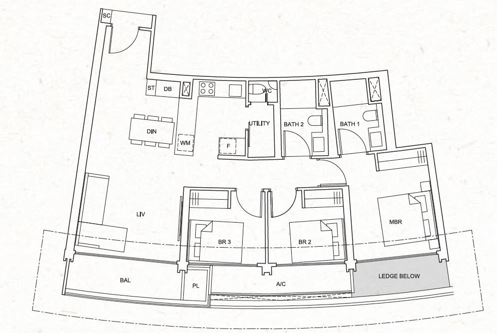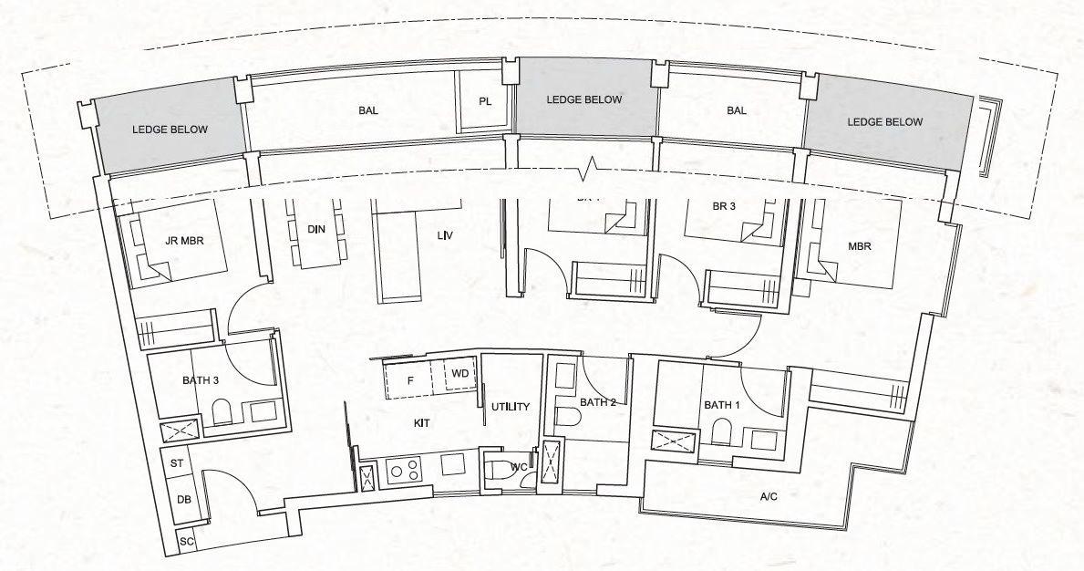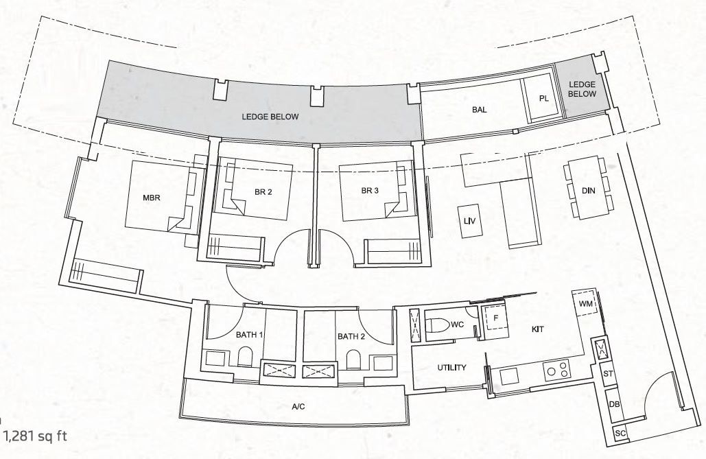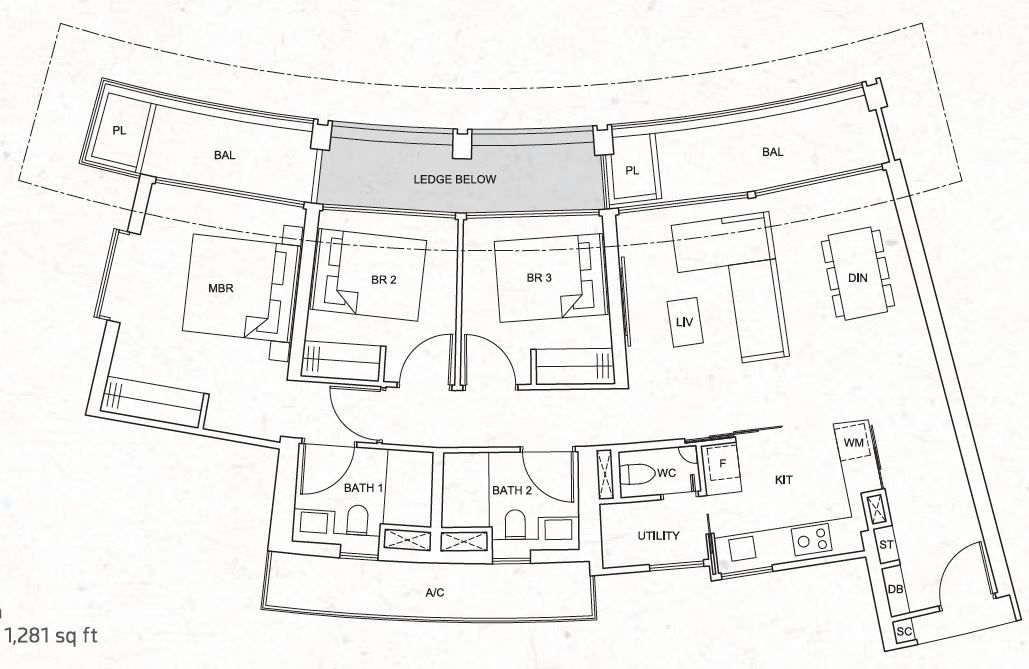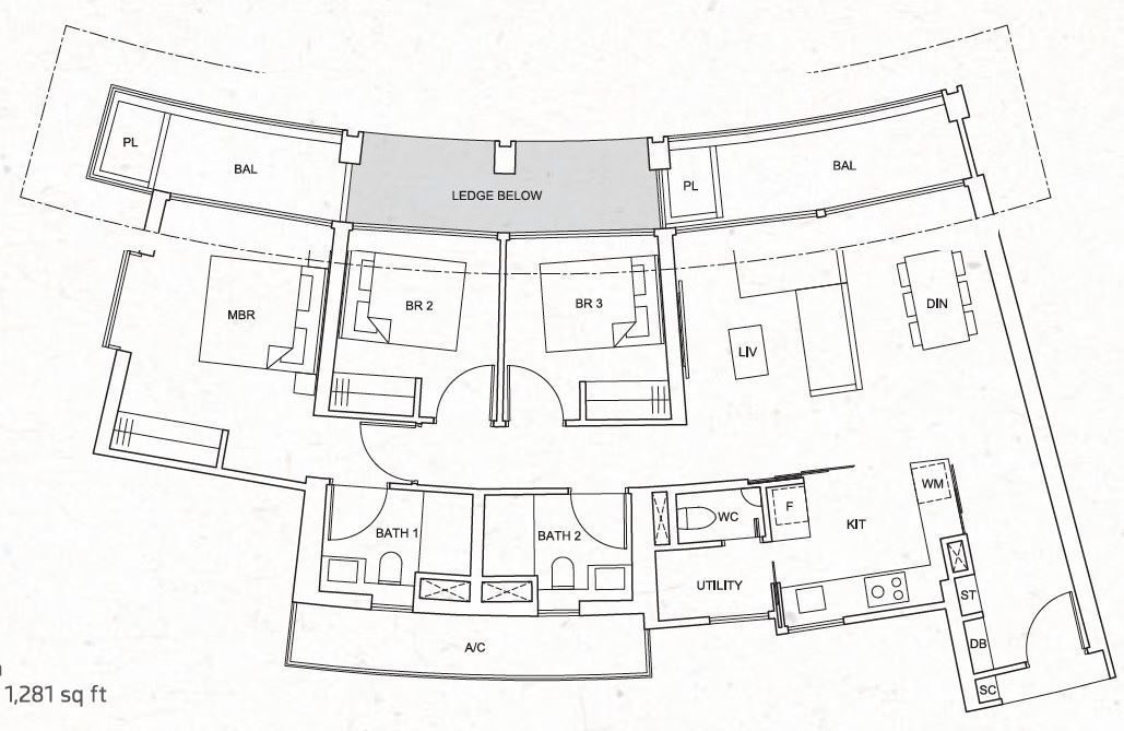 | 3 Bedroom | 1399 - 1432 | 140 |