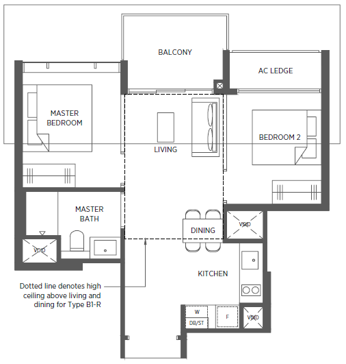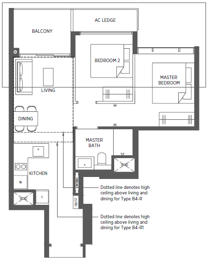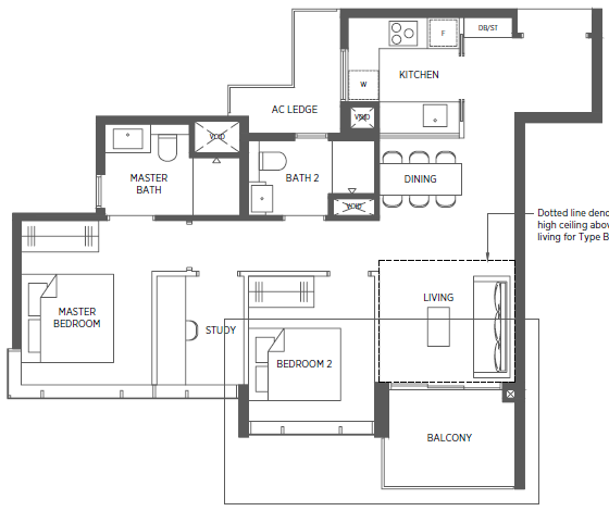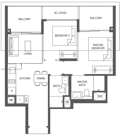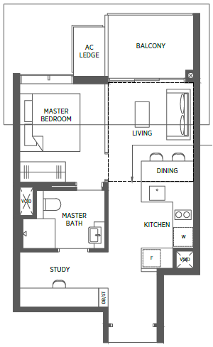 | 2 Bedroom + Study | 829 - 1023 | 124 |