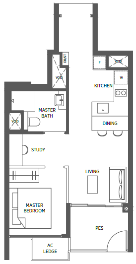 | 1 Bedroom + Study | 517 - 624 | 116 |
