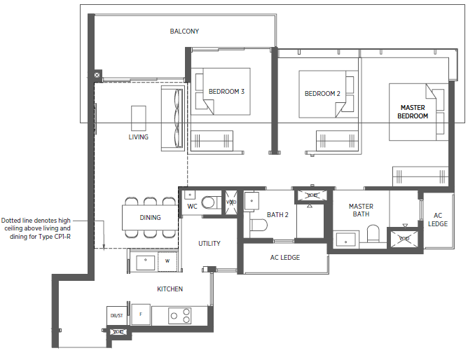 | 3 Bedroom + Flexi | 958 - 1119 | 126 |