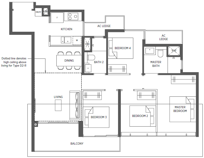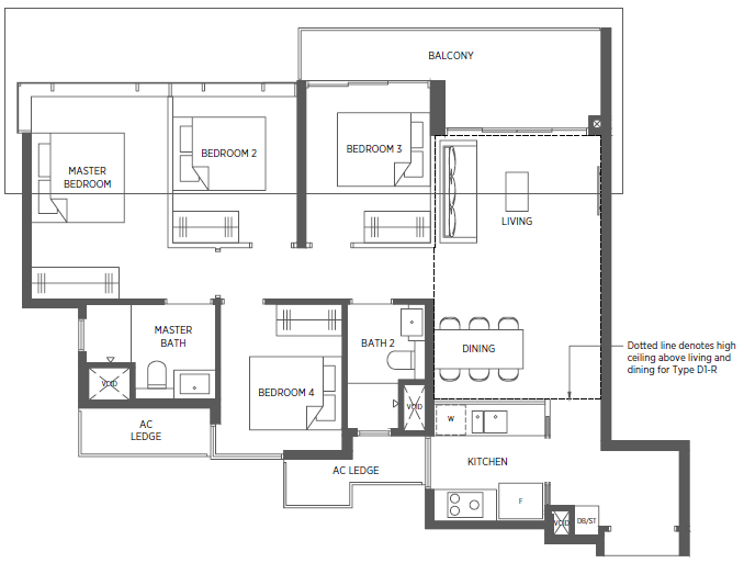 | 4 Bedroom | 1119 - 1259 |