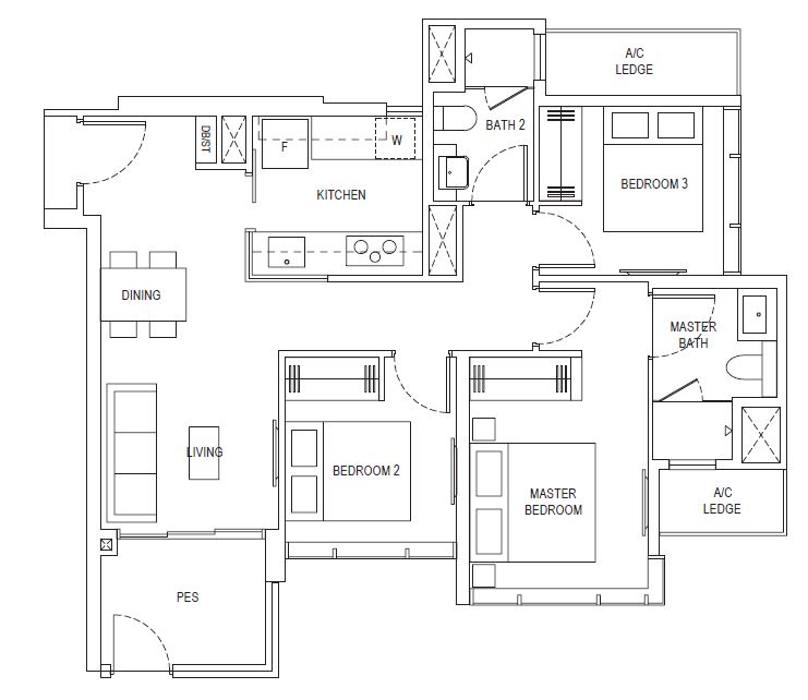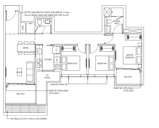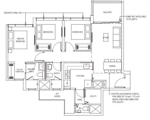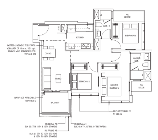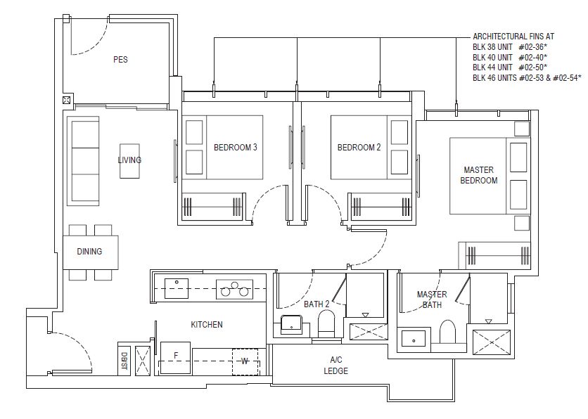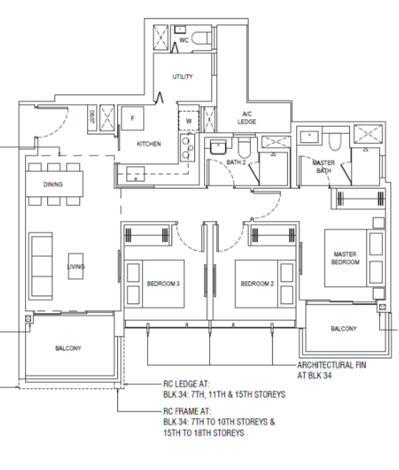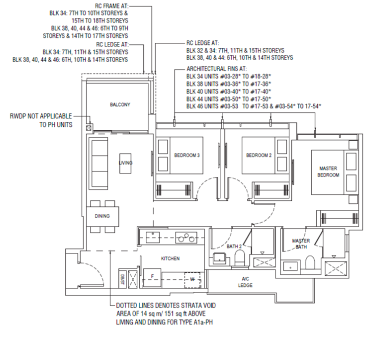 | 3 Bedroom (P) | 1184 - 1216 | 101 |