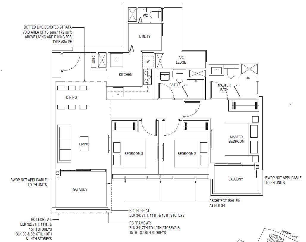 | 3 Bedroom Penthouse (D) | 1119 - 1163 | 5 |