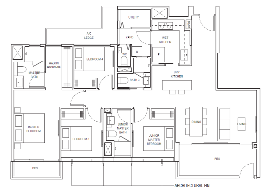 | 4 Bedroom (P) | 1356 - 1410 | 178 |