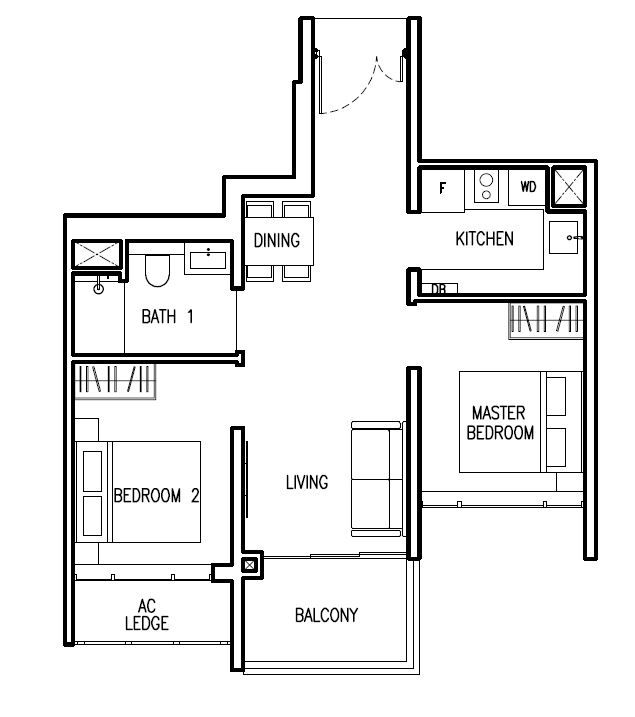 | 2 Bed + Study (P) | 743 - 786 | 60 |