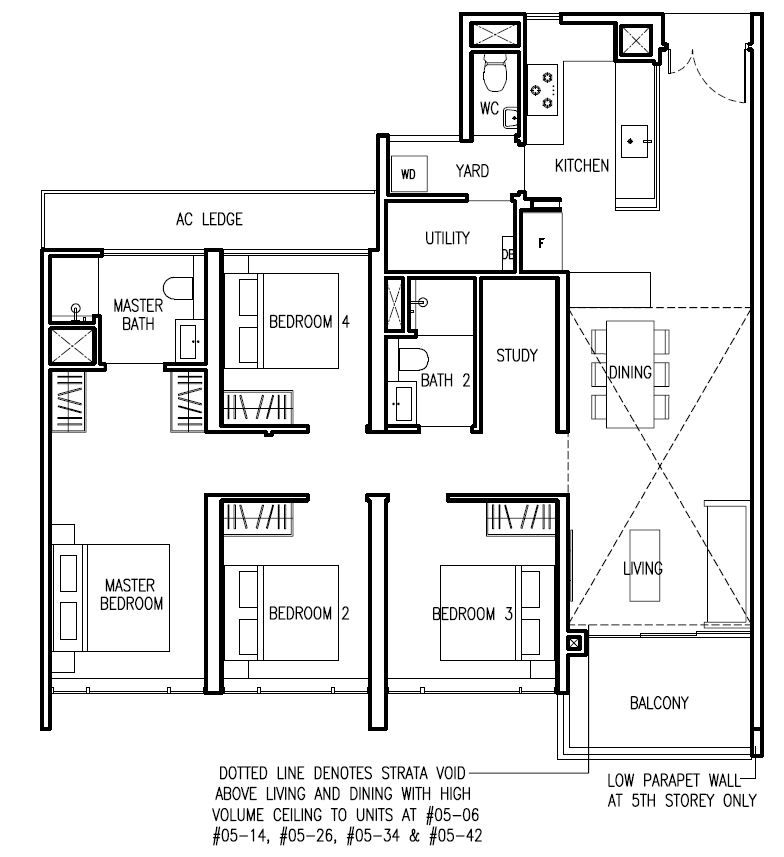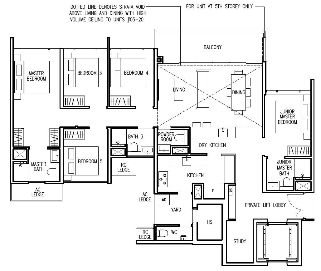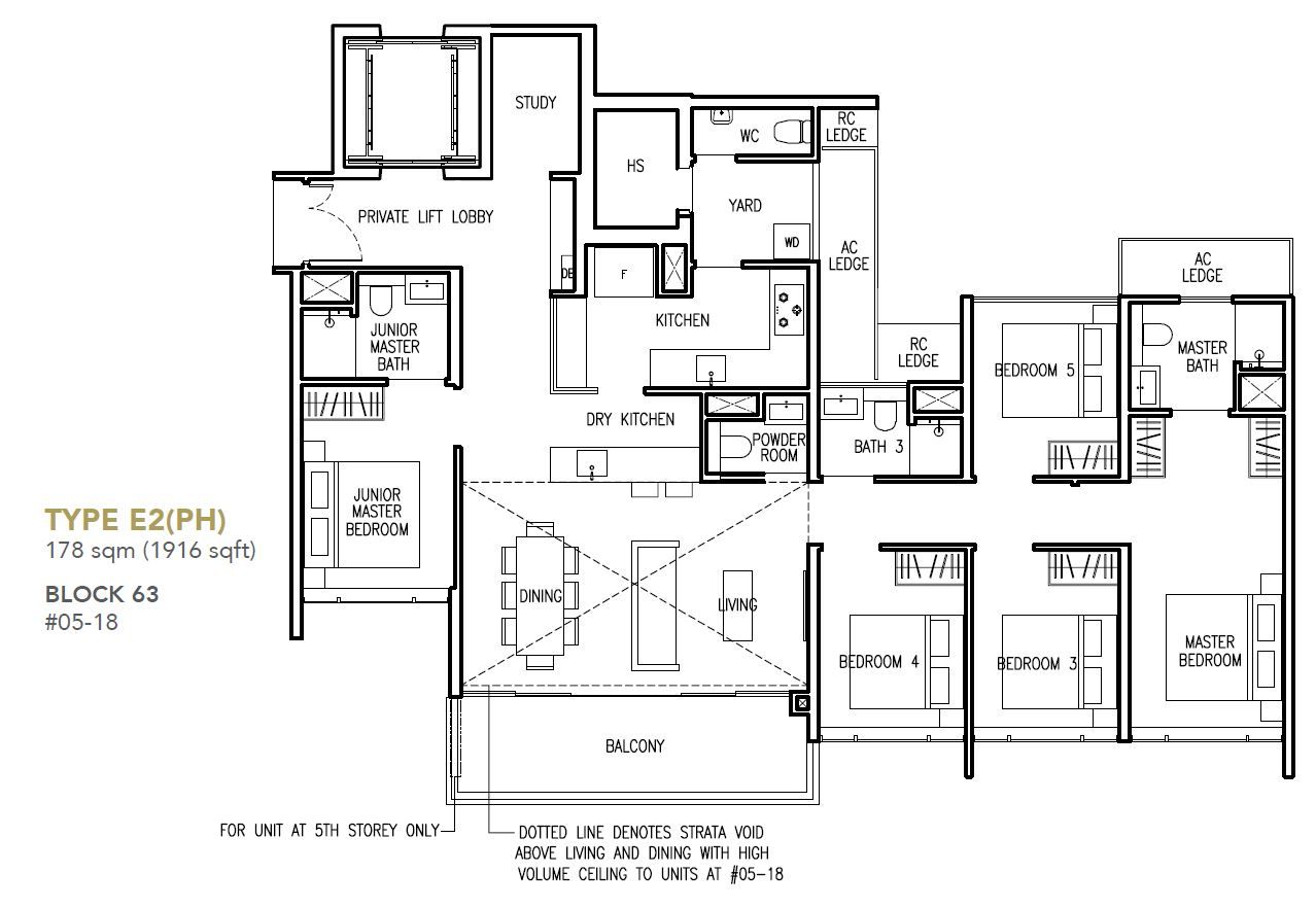 | 5 Bed + Study (E) | 1668 - 1905 | 10 |
