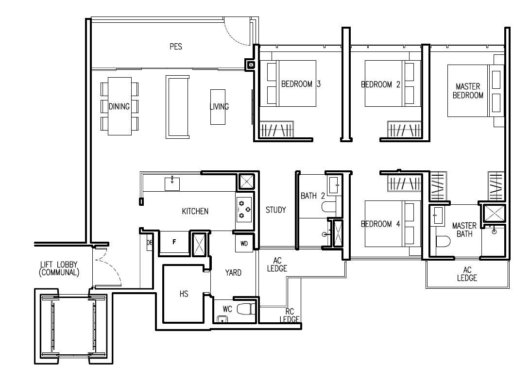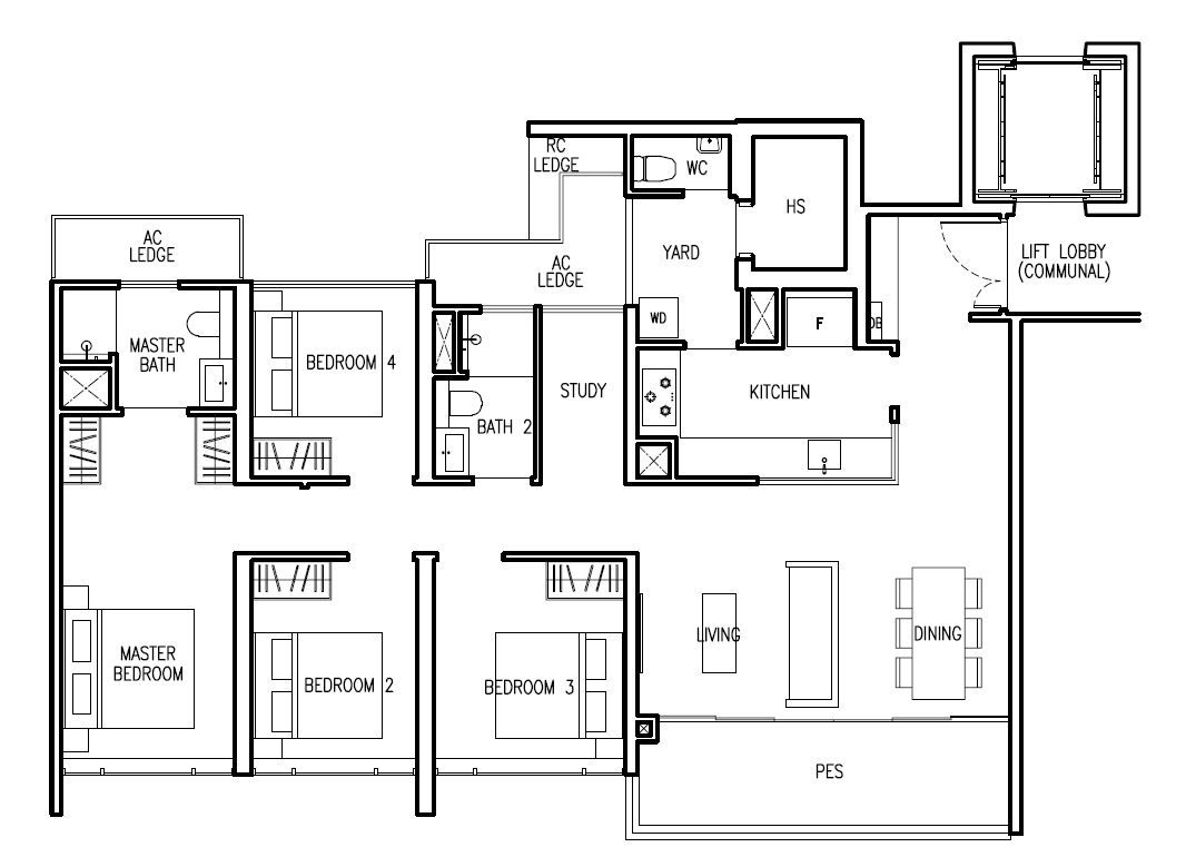 | 4 Bed + Study (E) | 1421 | 8 |