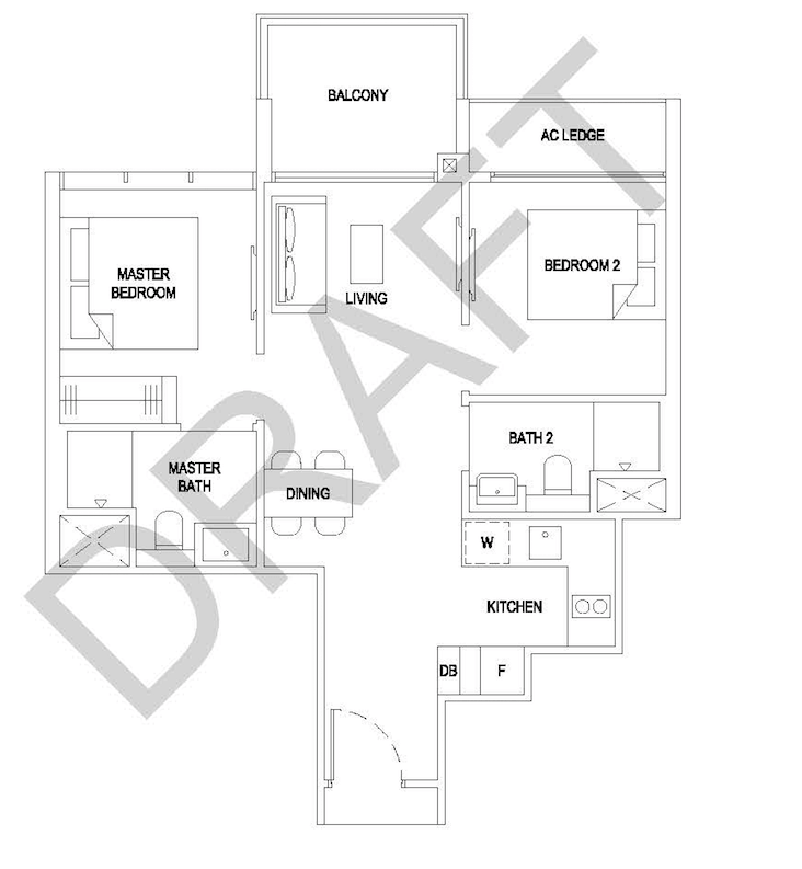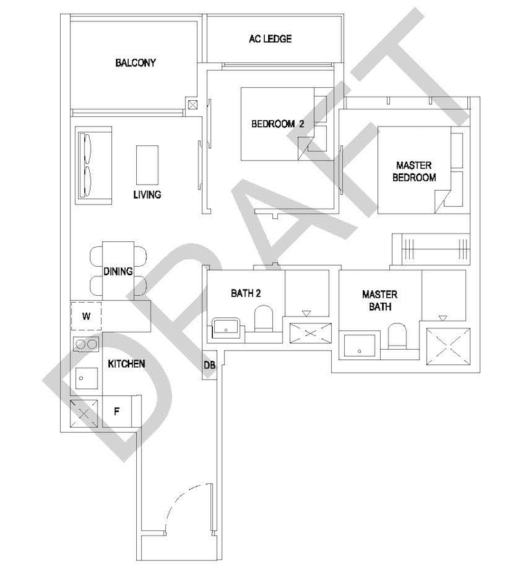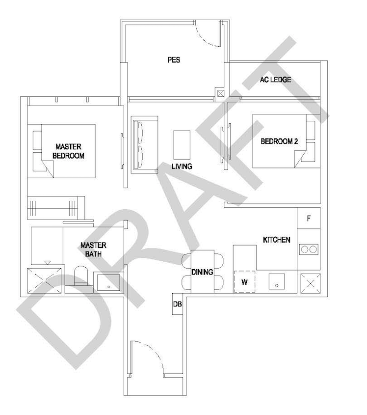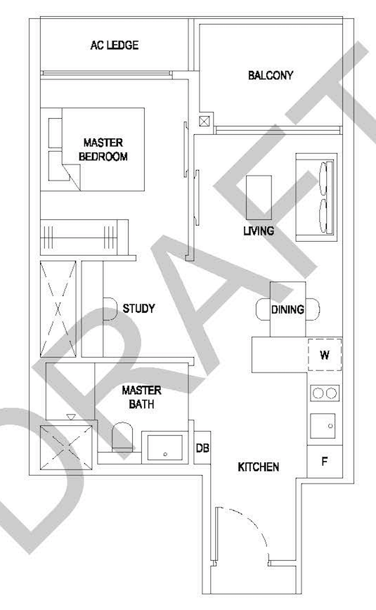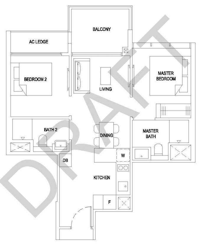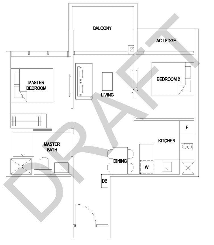 | 2 Bedroom (D) | 646 - 818 | 292 |