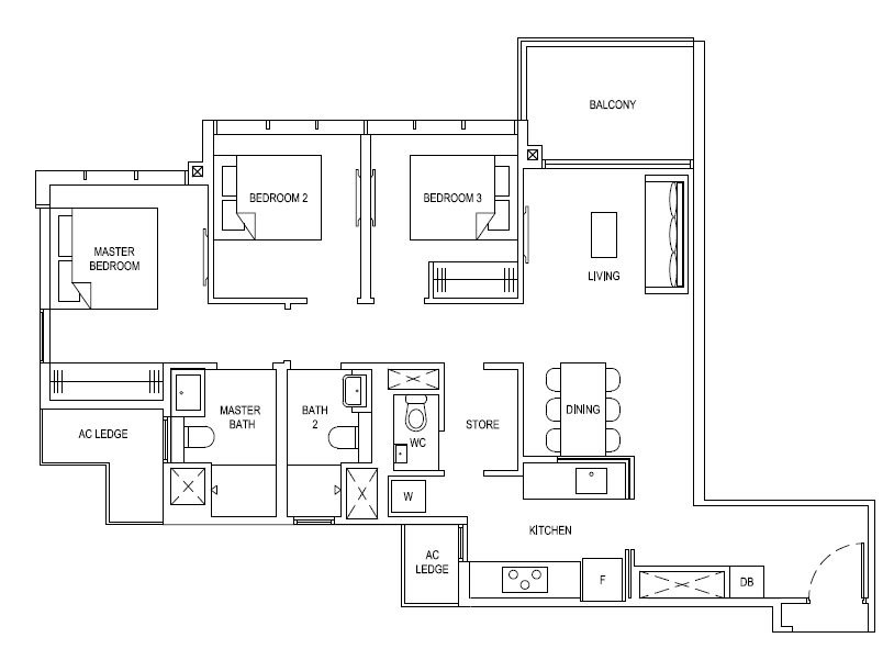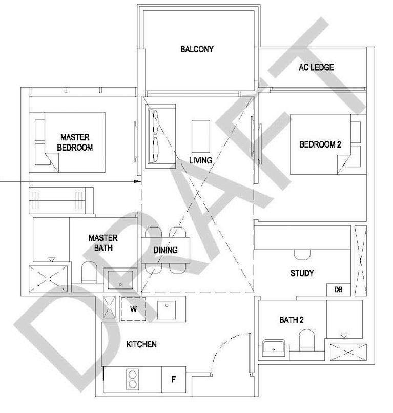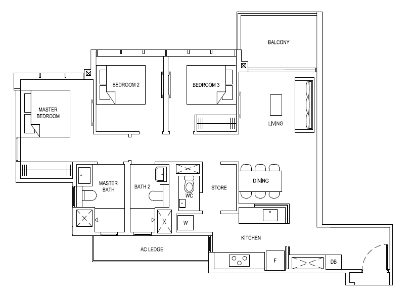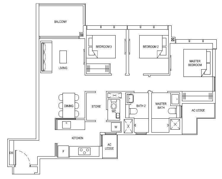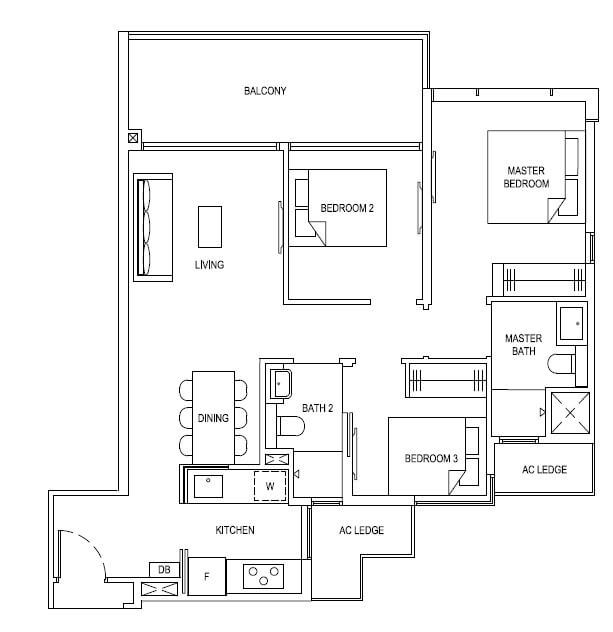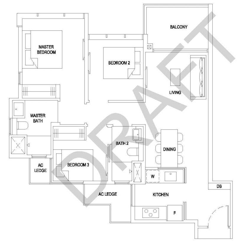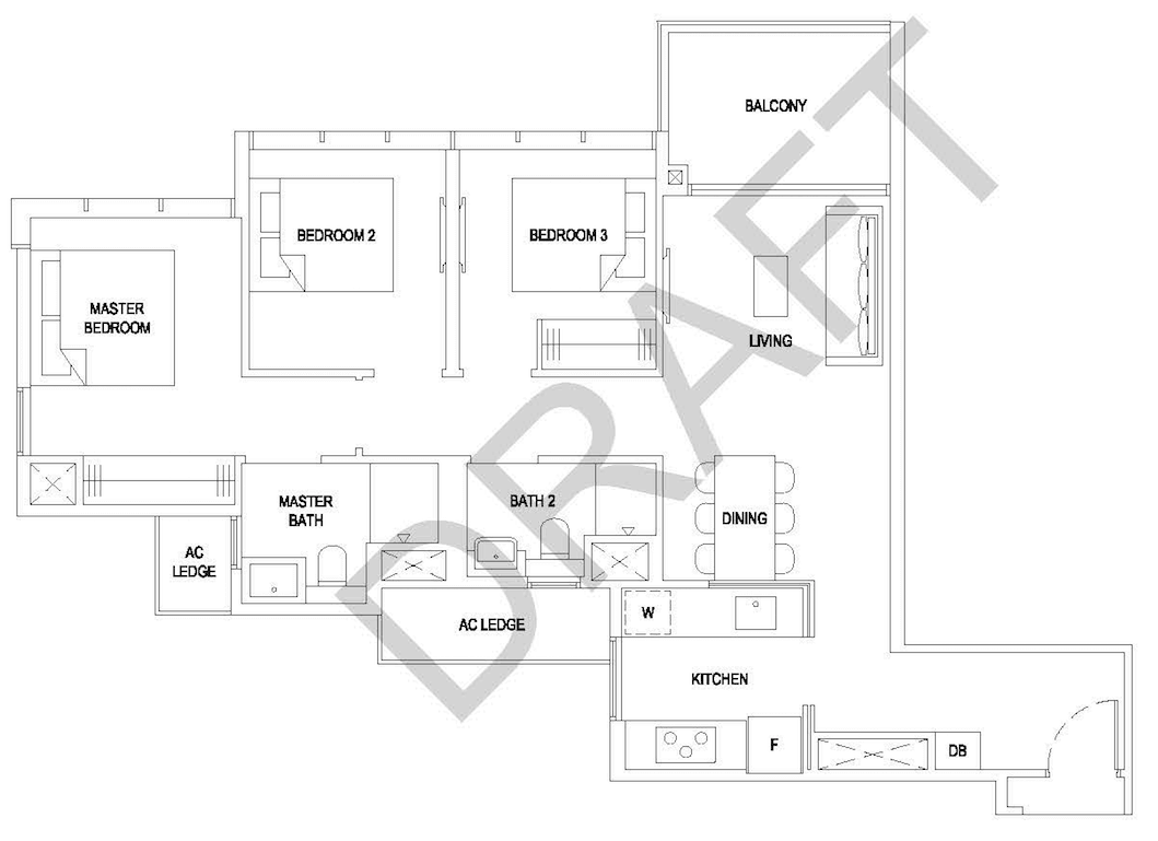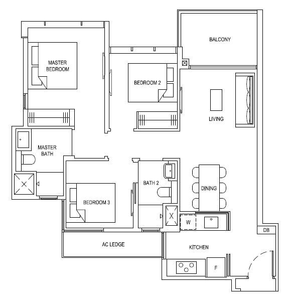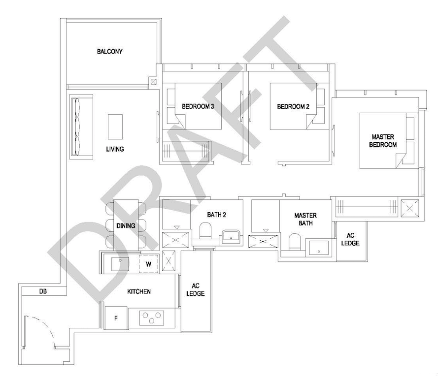 | 3 Bedroom (C) | 893 - 1130 | 232 |