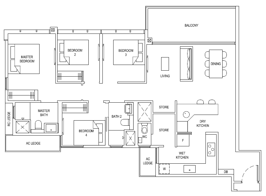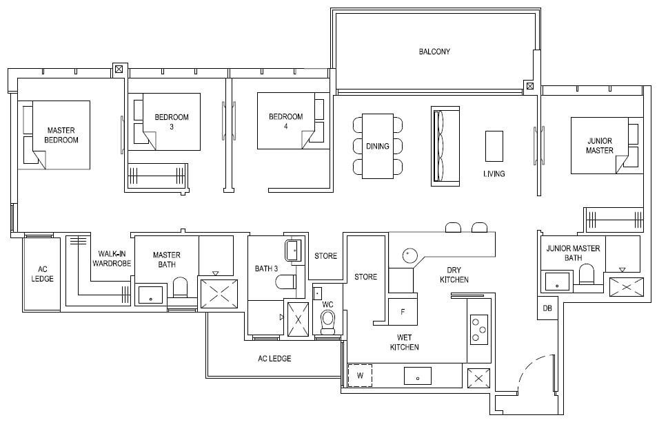 | 4 Bedroom (C) | 1281 - 1582 | 64 |