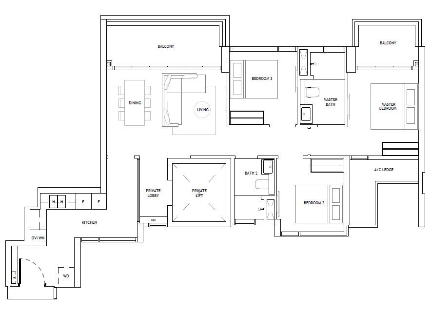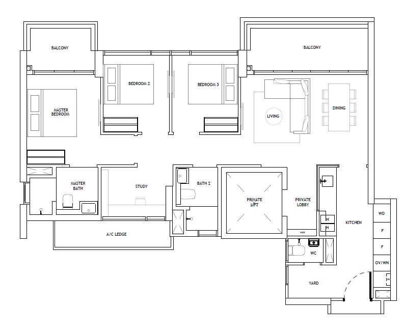 | 3 Bedroom (C) | 1076 - 1141 | 72 |
