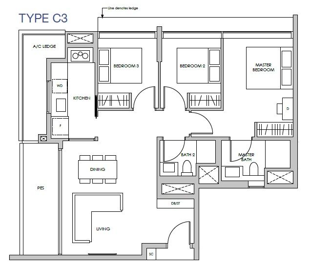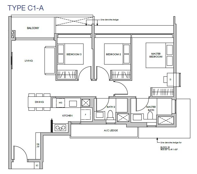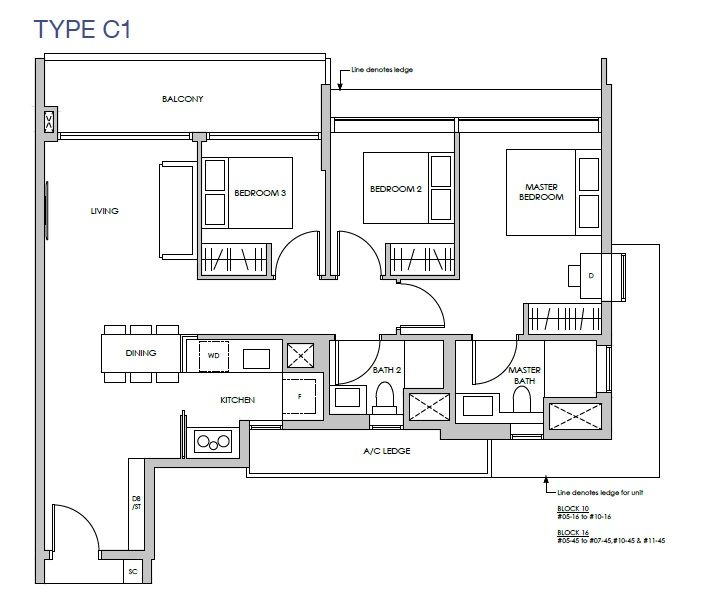 | 3 Bedroom | 1023 - 1066 | 72 |